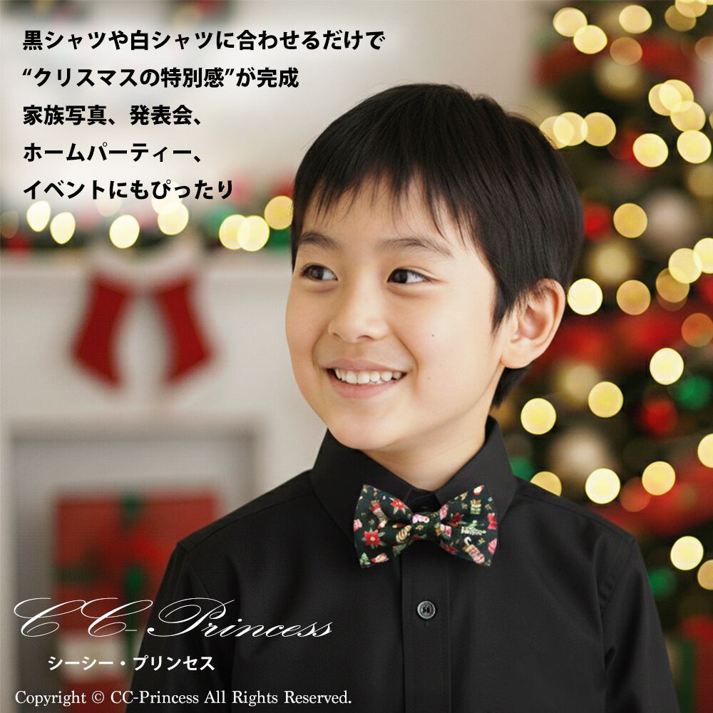 日本製 ハンドメイド|キッズ蝶ネクタイ クリスマス柄・フォーマルアクセサリー