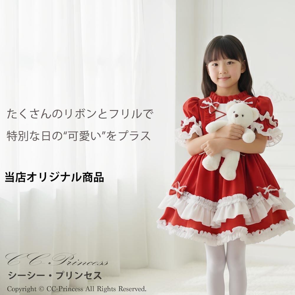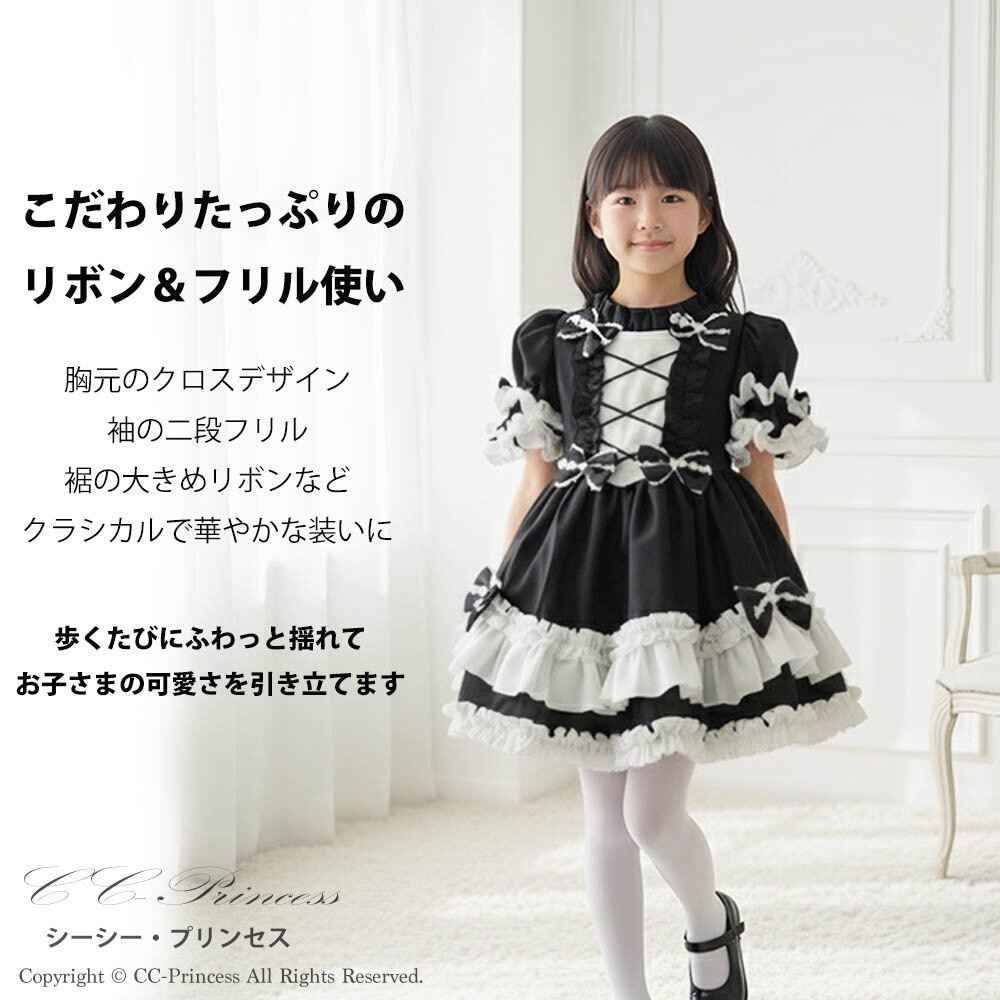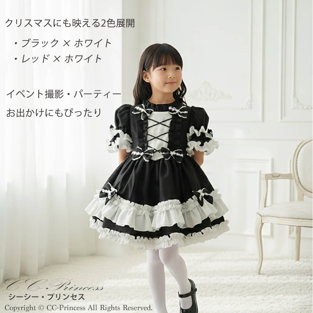 『ふわふわフリルが可愛い・ワンピースドレス2点セット』 キッズドレス 女の子 クラシカルドレス クリスマス ハロウィン ロリータ フリル ブラック 黒 赤 子供ドレス/キッズドレス クリスマス ドレス 子供 【CC-Princess】