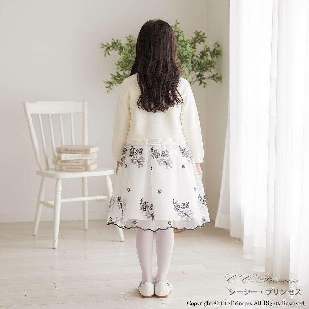 『レースのカーディガン(BR-013)』 キッズ、 子供、 女の子、レース、リボン、 ボレロ、カーディガン、 フォーマル、 入学式、 発表会、 結婚式、 クリーム色、 140・150・160【CC-Princess】
